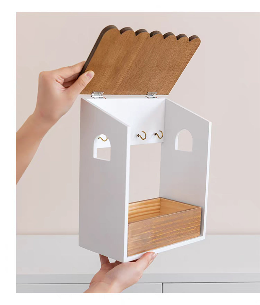 【卓上・壁掛け】小物収納 玄関収納 可愛い マスク収納ケース 収納ボックス キーフック キースタンド 鍵スタンド 鍵かけ 木製 ウッド 雑貨 小物置き 卓上 壁掛け 両用 収納 飾る インテリア小物 ギフト プレゼント